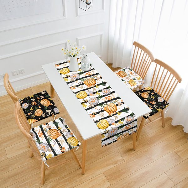 Özel Tasarım Kabak Desenli 4 Fermuarlı Sandalye Minderi ve Runner Seti
