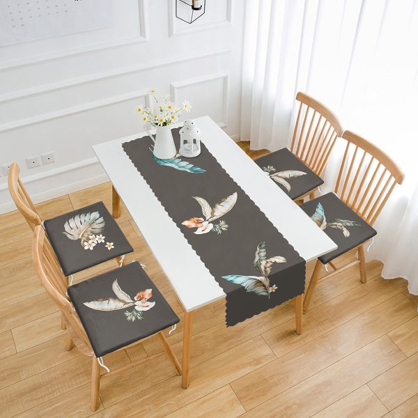 Renkli Zeminler Tüy Çizimli Özel Tasarım 4 Fermuarlı Sandalye Minderi 1 Runner Seti