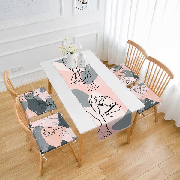 Soyut Renkli Gül Çizimleri 4 Fermuarlı Sandalye Minderi ve 1 Runner Seti