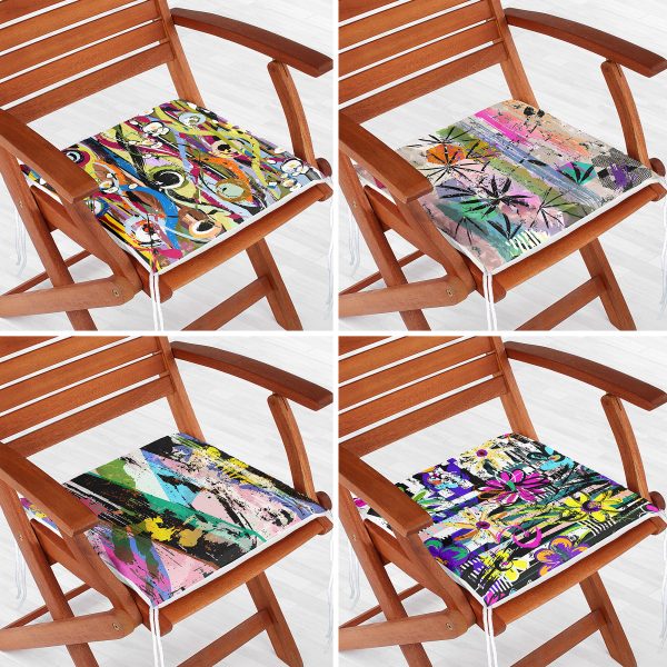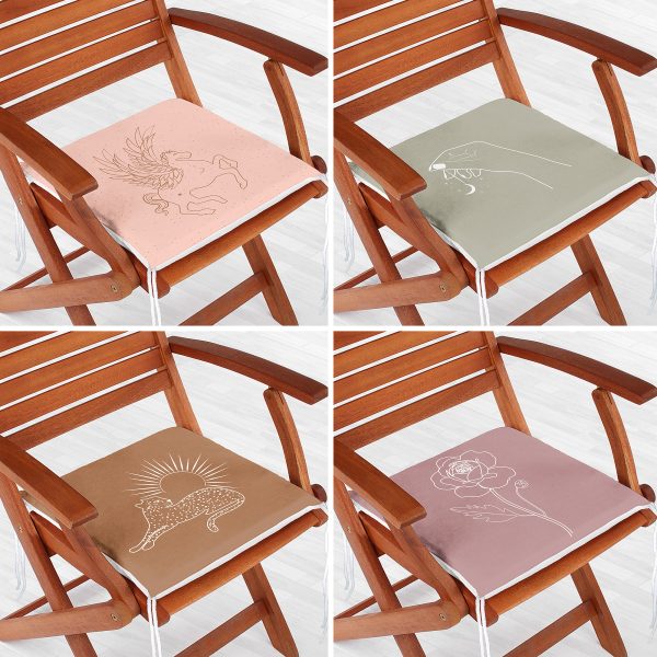 4’lü Dijital Baskılı Dekoratif Fermuarlı Sandalye Minderi Seti