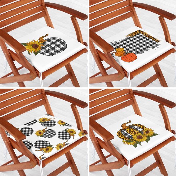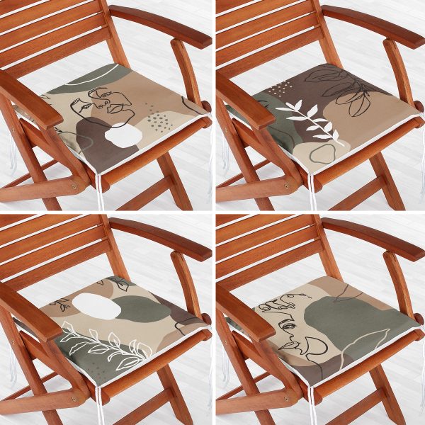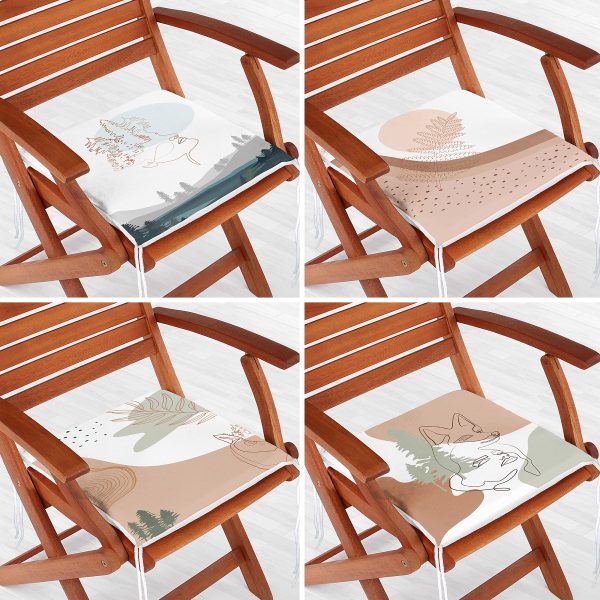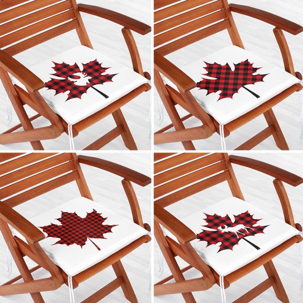 4’lü Ekose Yaprak Tasarımlı Dijital Baskılı Modern Fermuarlı Sandalye Minderi Seti