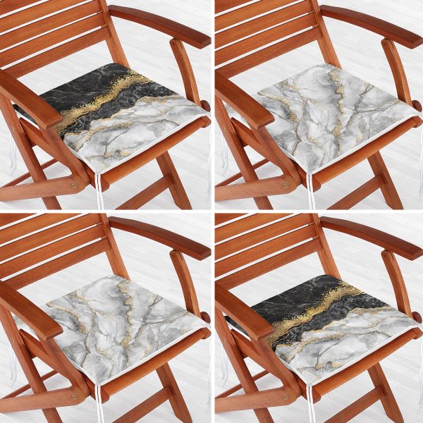 4’lü Siyah Gümüş Renk Mermer Desenli Fermuarlı Sandalye Minderi Seti