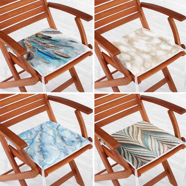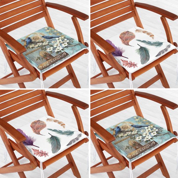 4’lü Kuş ve Tüy Modern Fermuarlı Sandalye Minderi Seti