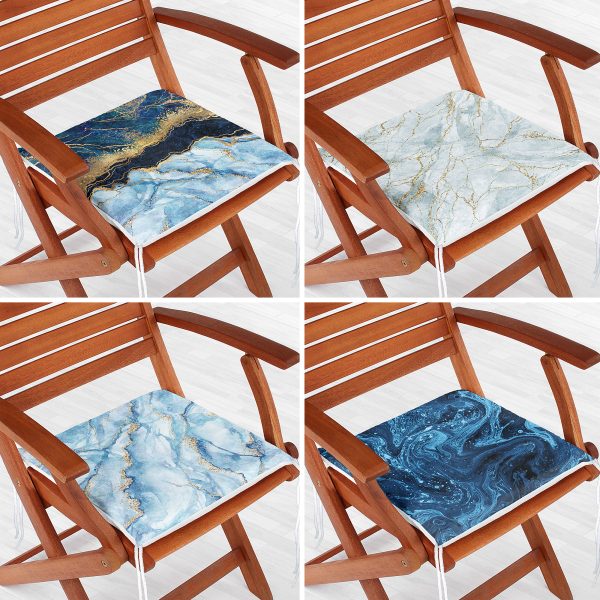 4’lü Mavi Mermer Fermuarlı Sandalye Minderi Seti