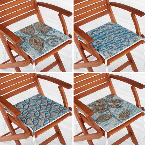 4’lü Mavi Kahve Kabartma Tasarımlı Dijital Baskılı Fermuarlı Sandalye Minderi Seti