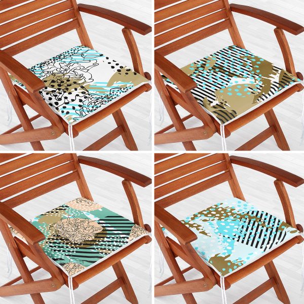 4’lü Düz Ve Yatay Çizgiler Üzerinde Sulu Boya Tasarımlı Modern Fermuarlı Sandalye Minderi Seti