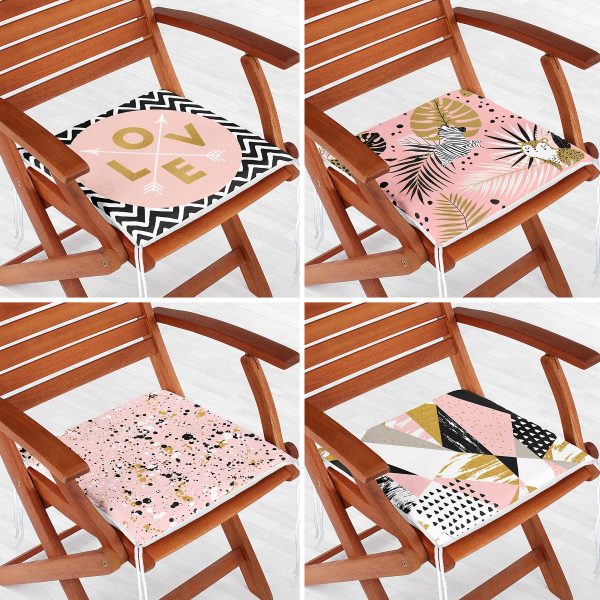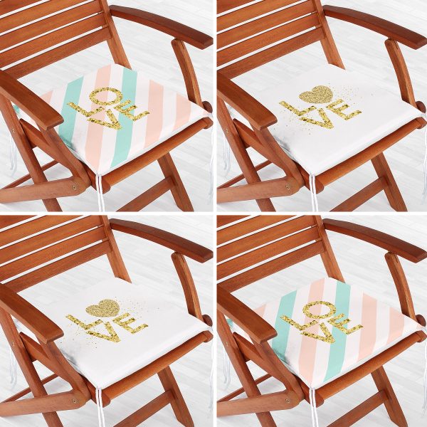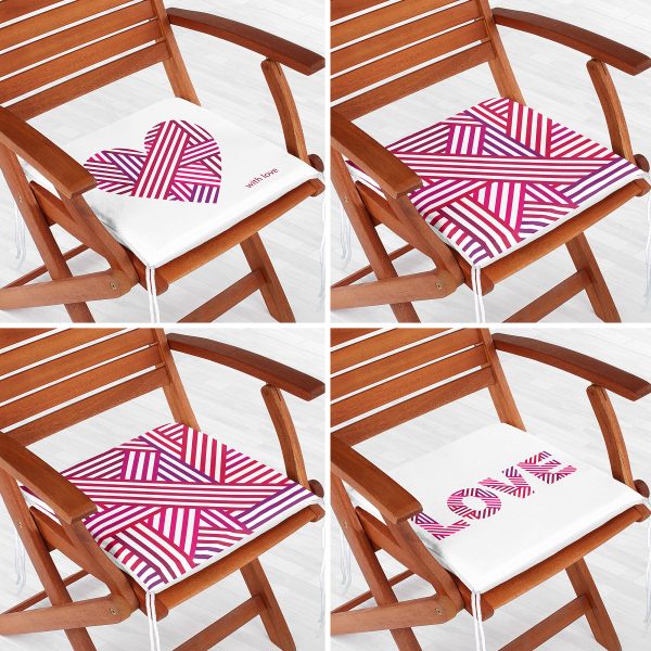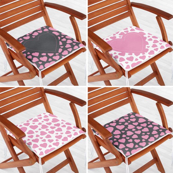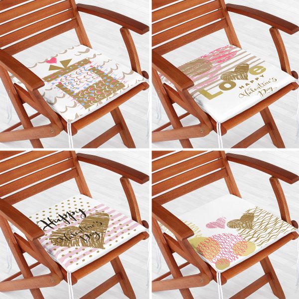 4’lü Sevgililer Günü Konseptli Özel Tasarım Modern Kombin Fermuarlı Sandalye Minderi Seti
