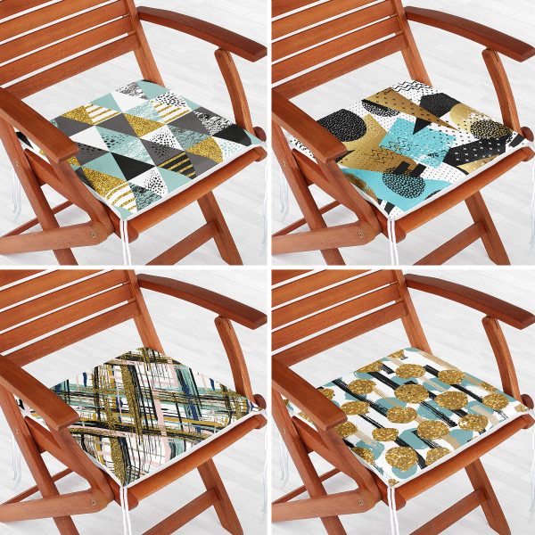 4’lü Renkli Zemin Üzerinde Geometrik Çizimli Modern Fermuarlı Sandalye Minderi Seti