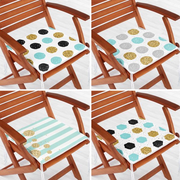 4’lü Beyaz Zemin Üzerinde Gold Detaylı Geometrik Desenli Modern Fermuarlı Sandalye Minderi Seti
