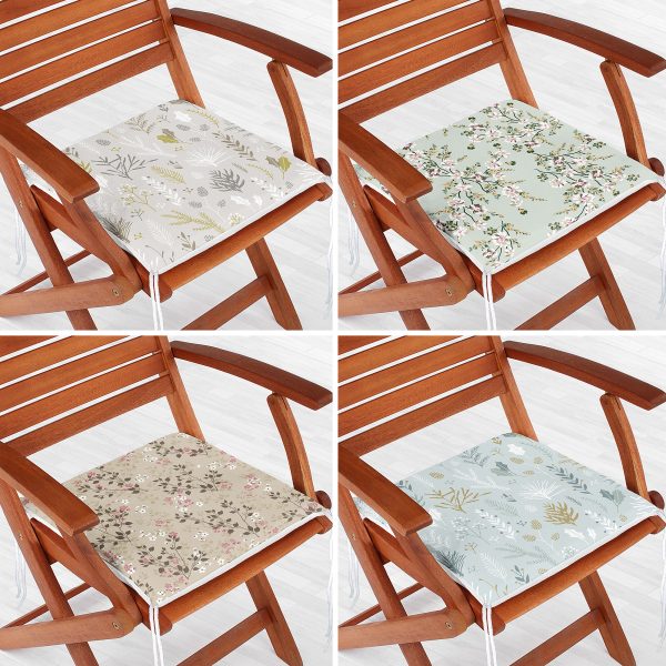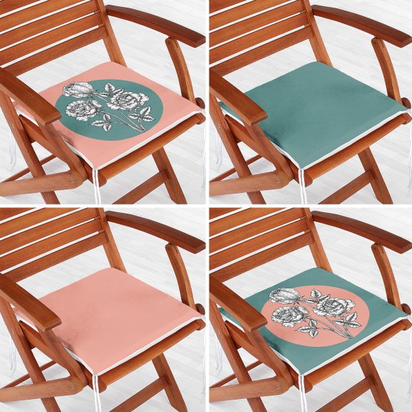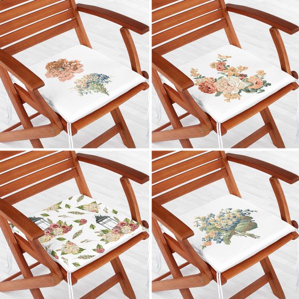 4’lü Çiçek Desenli Özel Tasarım Dijital Baskılı Modern Fermuarlı Sandalye Minderi Seti
