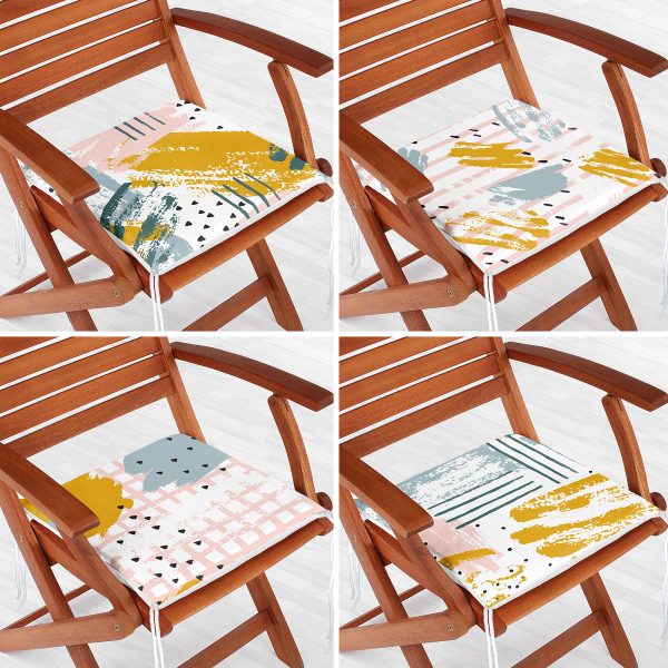 4’lü Sulu Boya Fırça Darbeli Geometrik Desenli Fermuarlı Sandalye Minderi Seti
