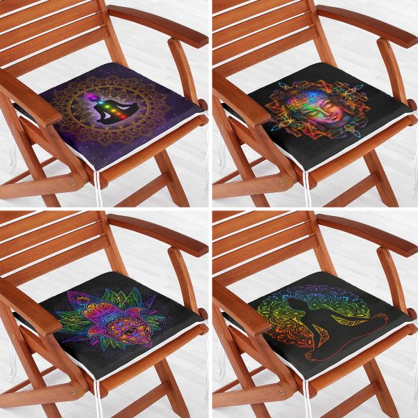 4’lü Uzak Doğu Yoga Tasarımlı Renkli Fermuarlı Sandalye Minderi Seti