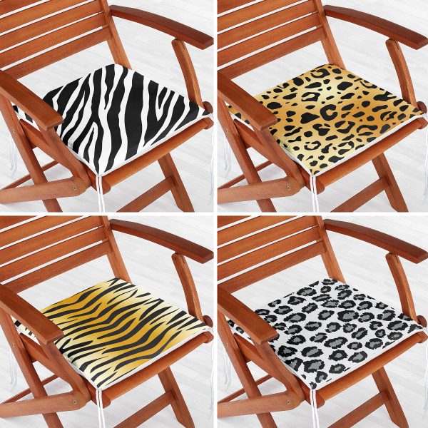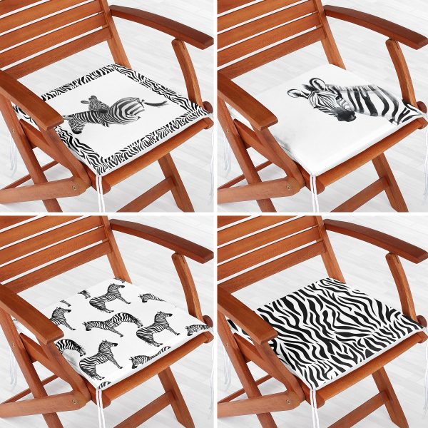 4’lü Zebra Motifli Özel Tasarım Fermuarlı Sandalye Minderi Seti