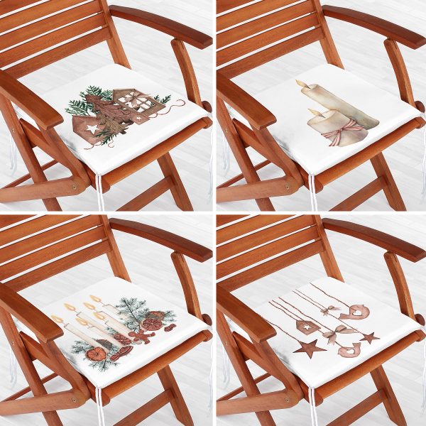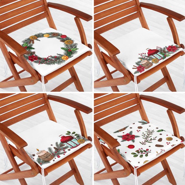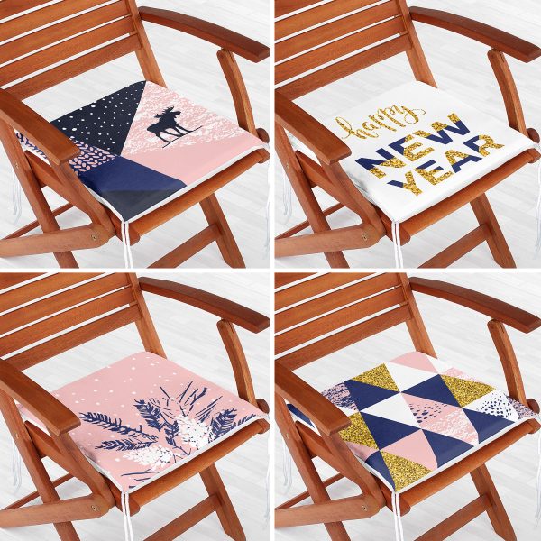 4’lü Yılbaşı Özel Tasarımlı Dijital Baskılı Modern Fermuarlı Sandalye Minderi Seti