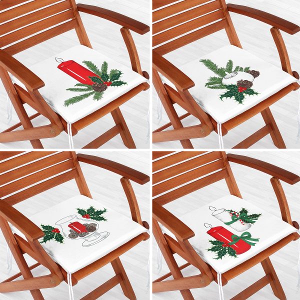 4’lü Kırmızı Mum Şamdan Tasarımlı Dijital Baskılı Modern Fermuarlı Sandalye Minderi Seti