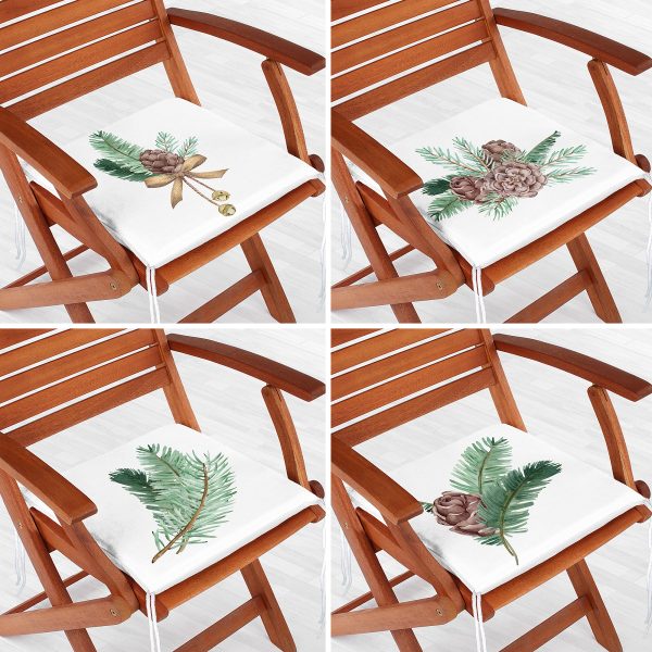 4’lü Kozalaklı Yaprak Tasarımlı Dijital Baskılı Modern Fermuarlı Sandalye Minderi Seti