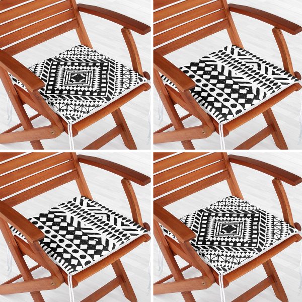 4’lü Siyah Beyaz Etnik Geometrik Çizimli Dijital Baskılı Modern Fermuarlı Sandalye Minderi Seti