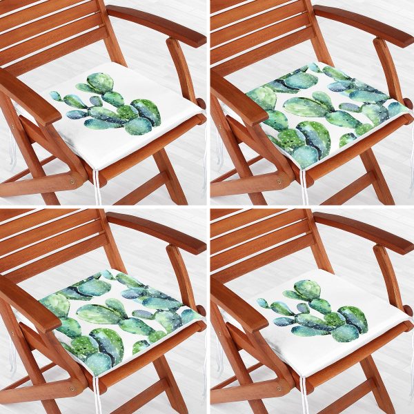 4’lü Beyaz Zemin Kaktüs Tasarımlı Dijital Baskılı Modern Fermuarlı Sandalye Minderi Seti