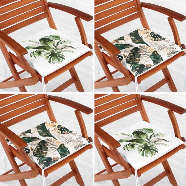 4’lü Tropik Yaprak Özel Tasarımlı Dijital Baskılı Modern Fermuarlı Sandalye Minderi Seti