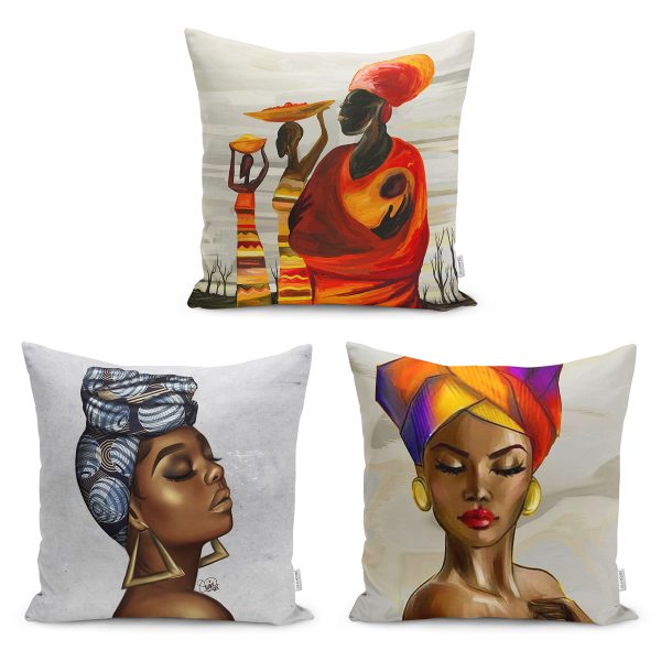 3’lü Etnik Afrika Kadın Tasarımlı Modern Yastık Kırlent Kılıf Seti