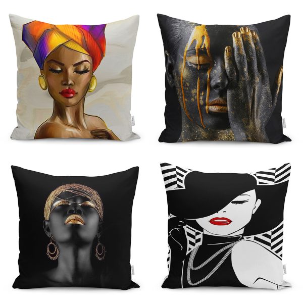 4’lü Afrikan Kadın Tasarımlı Dijital Baskılı Yastık Kırlent Kılıf Seti