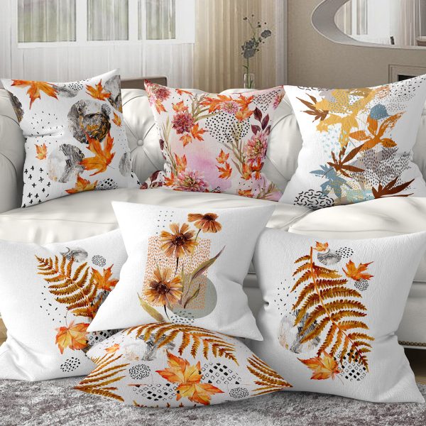 4’lü Beyaz Zemin Üzerinde Renkli Sonbahar Yaprak Desenli Modern Yastık Kırlent Kılıf Seti