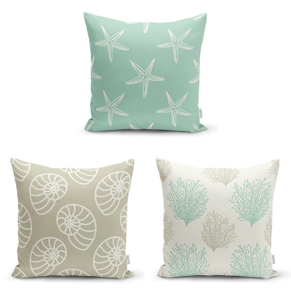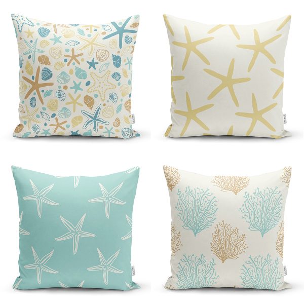 4’lü Deniz Yıldızı Motifli Dijital Baskılı Modern Yastık Kırlent Kılıf Seti