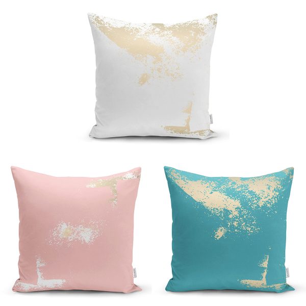 3’lü Gold Detaylı Mermer Desenli Modern Yastık Kırlent Kılıf Seti