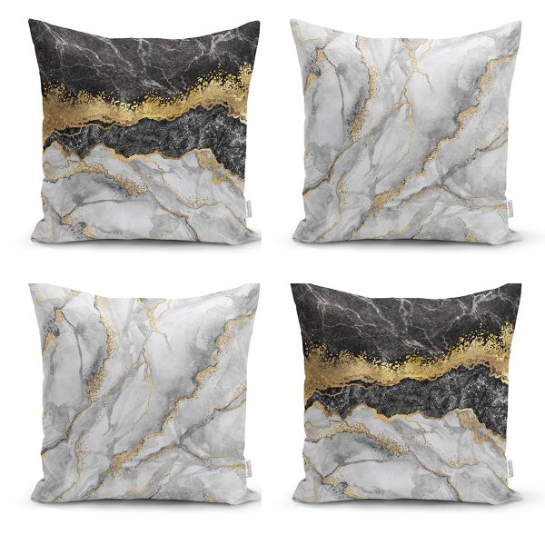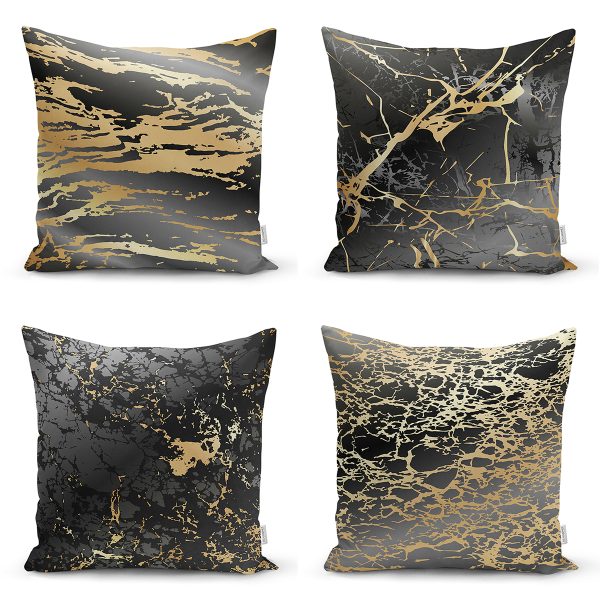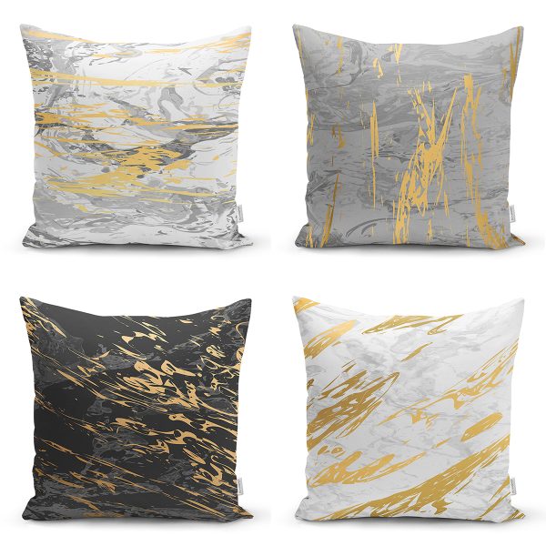 4’lü Renkli Zemin Üzerinde Gold Detaylı Mermer Desenli Modern Yastık Kırlent Kılıf Seti
