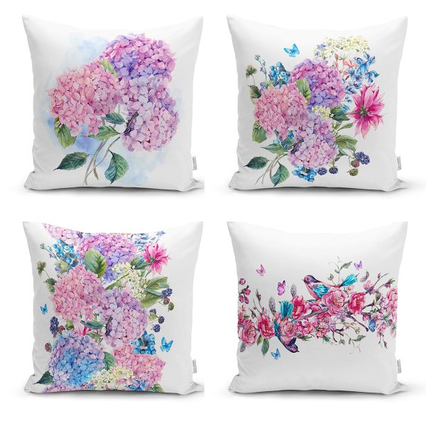 Realhomes Ortanca Çiçeği Motifli Modern 4’lü Kombin Yastık Kırlent Kılıfı