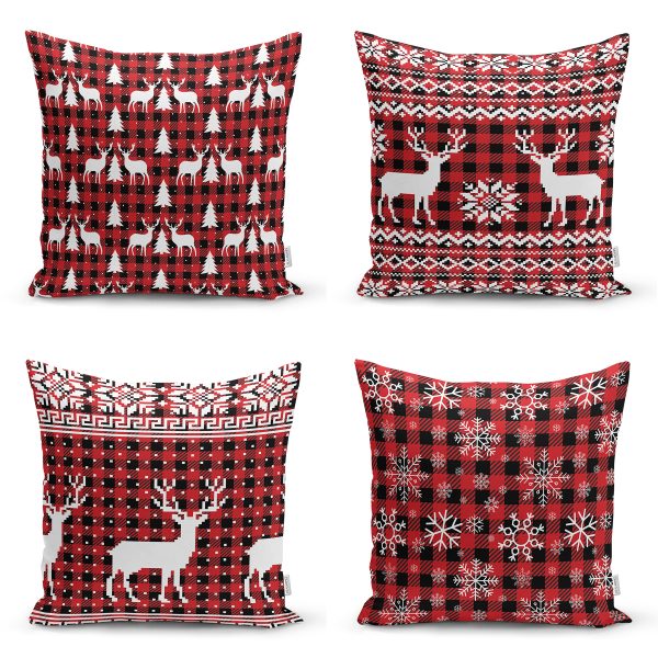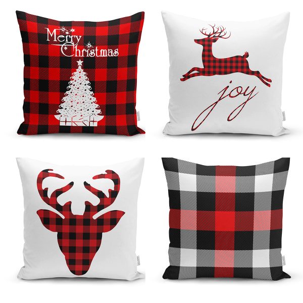 Realhomes Yılbaşı Temalı Ekoseli 4’lü Modern Yastık Kırlent Kılıfı