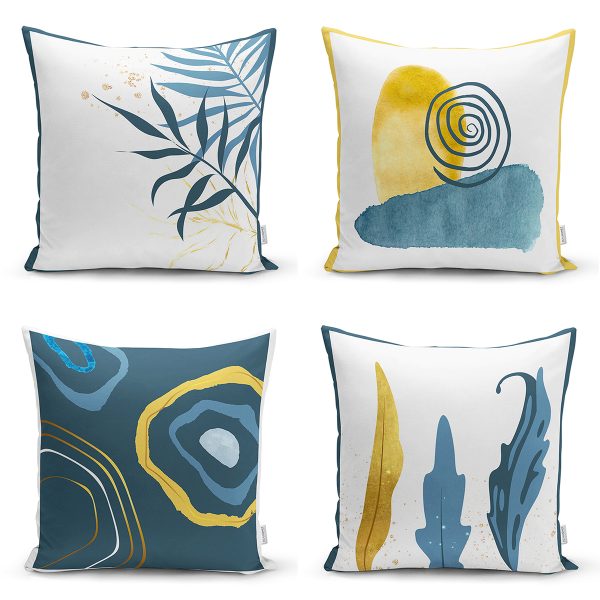 4’lü Puantiye ve Fırça Darbeli Konseptli Dekoratif Yastık Kırlent Kılıfı Seti