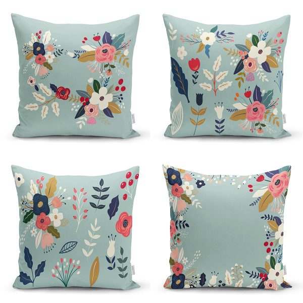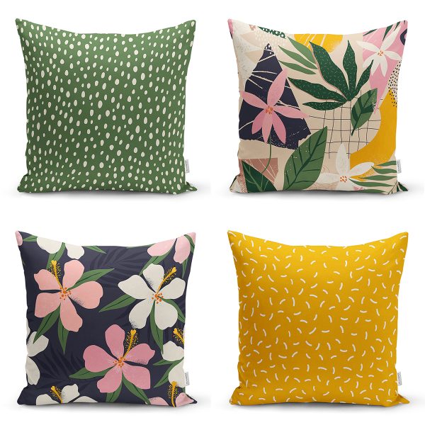 4’lü Rengarenk Zemin Üzerinde Çiçek Desenli Modern Yastık Kırlent Kılıf Seti