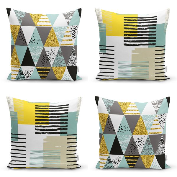Realhomes Sarı ve Grinin Uyumlu 4’lü Kombin Yastık Kırlent Kılıfı