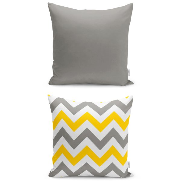 2’li Sarı Gri Zigzak Tasarımlı Dijital Baskılı Yastık Kırlent Kılıf Seti