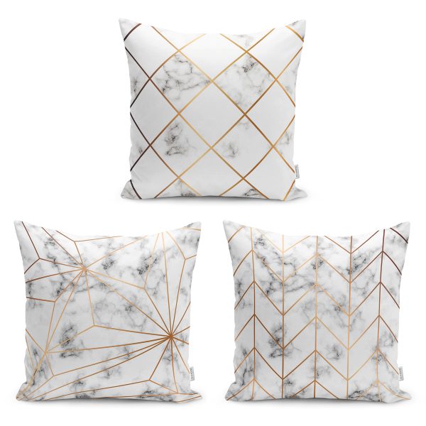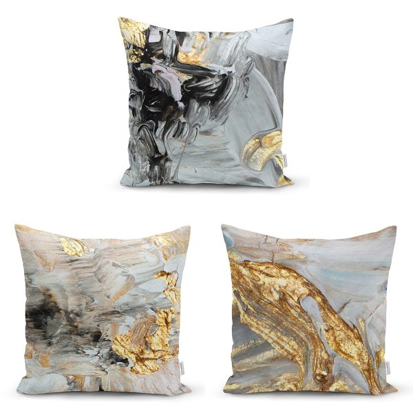 3’lü Renkli Zeminli Gold Detaylı Mermer Desenli Modern Yastık Kırlent Kılıf Seti