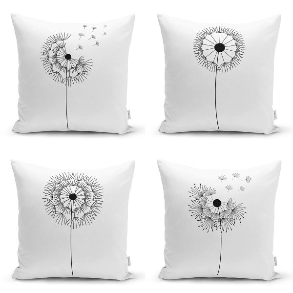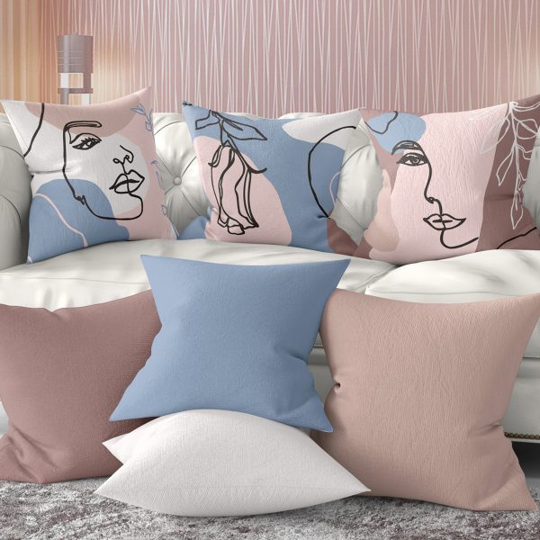 4’lü Beyaz Zemin Üzerinde Onedraw Çizimli Modern Yastık Kırlent Kılıf Seti