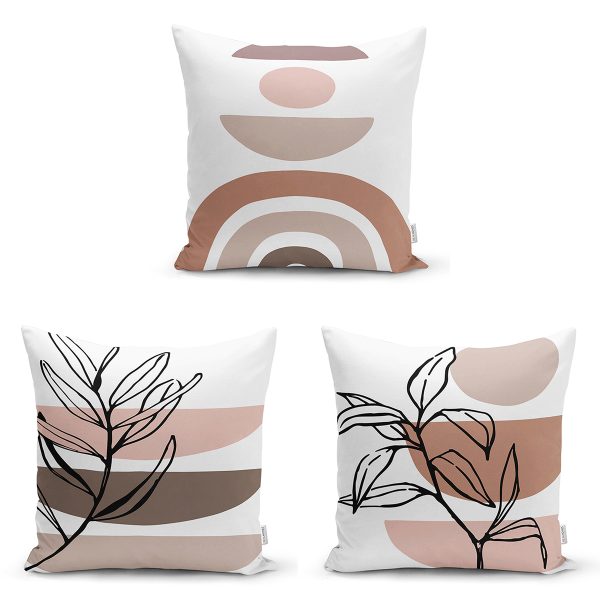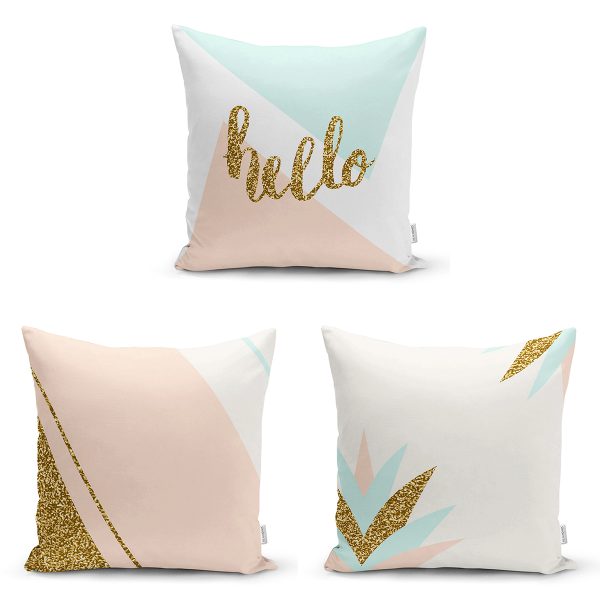 3’lü Gold Detaylı Soyut Çizimli Dekoratif Yastık Kırlent Kılıf Seti