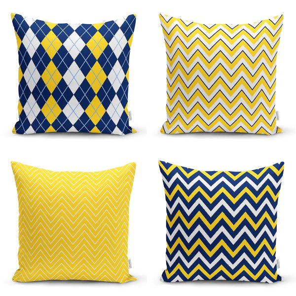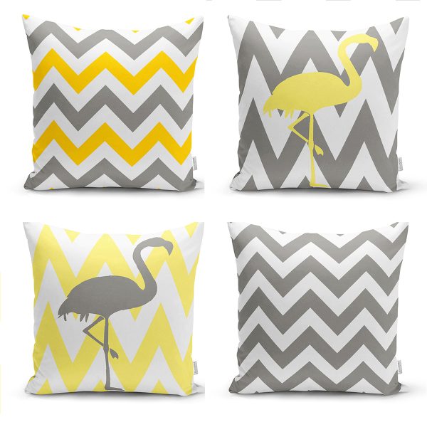 Realhomes Sarı Gri Zigzaglı Flamingo Desenli 4’lü Modern Yastık Kırlent Kılıfı
