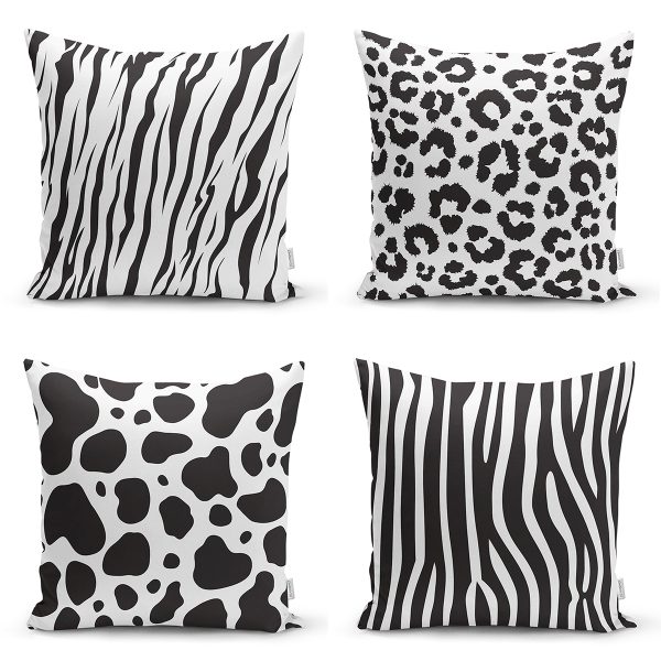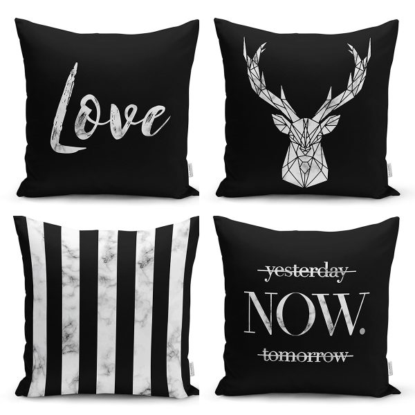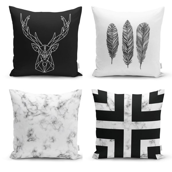 Realhomes Siyah Beyaz Renkli 4’lü Konsept Yastık Kırlent Kılıfı