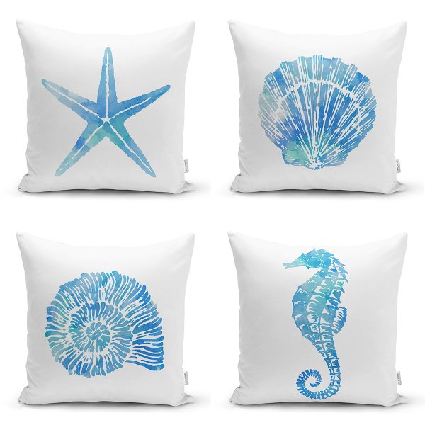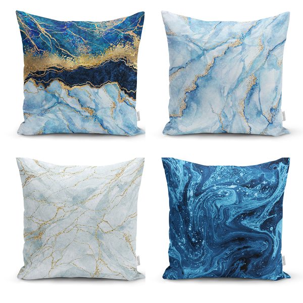 Realhomes Mavi Mermer Kombinli 4’lü Yastık Kırlent Kılıfı