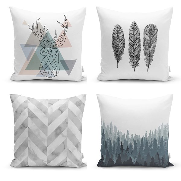 Realhomes Kuş ve Tüy Kombinli Modern 4’lü Dekoratif Yastık Kırlent Kılıfı