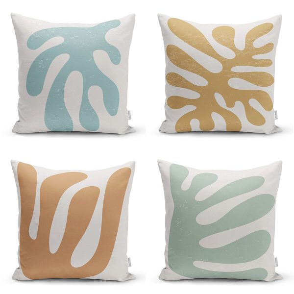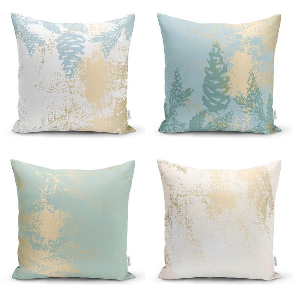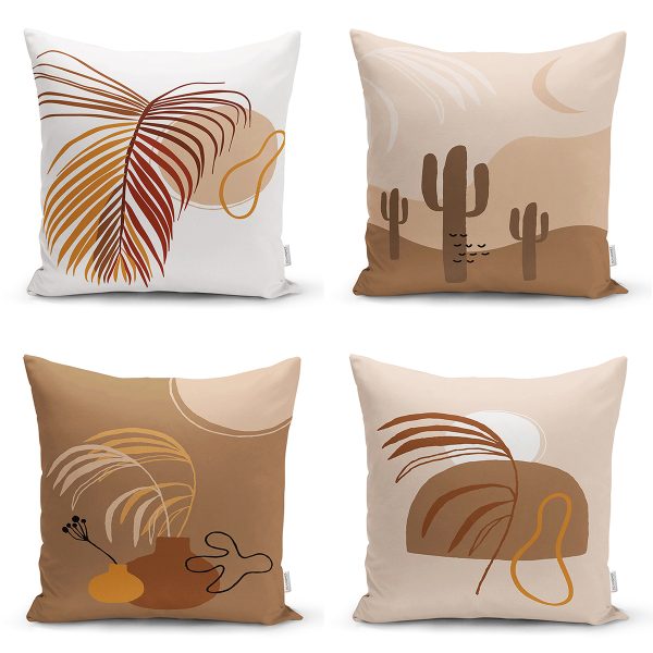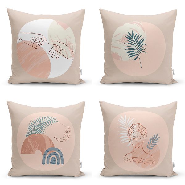 4’lü Renkli Zemin Üzerinde Yaprak Desenli Modern Yastık Kırlent Kılıf Seti