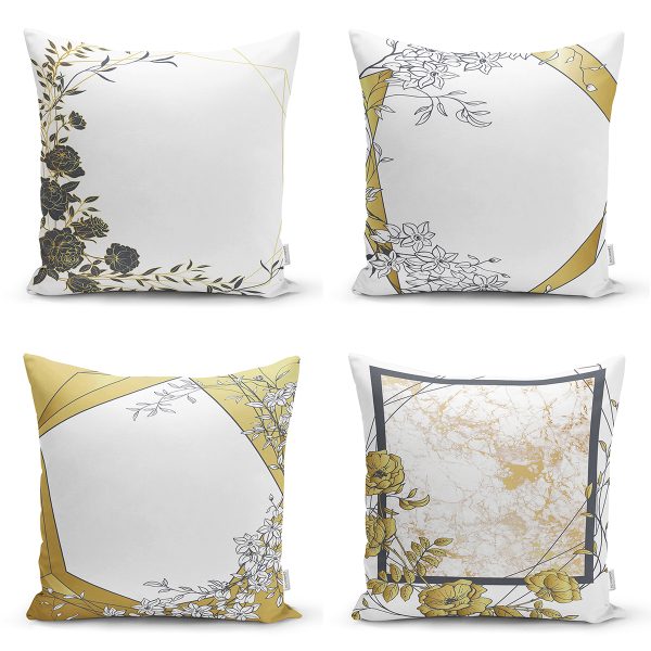 4’lü Beyaz Zemin Üzerinde Gold Detaylı Geometrik Desenli Modern Yastık Kırlent Kılıf Seti