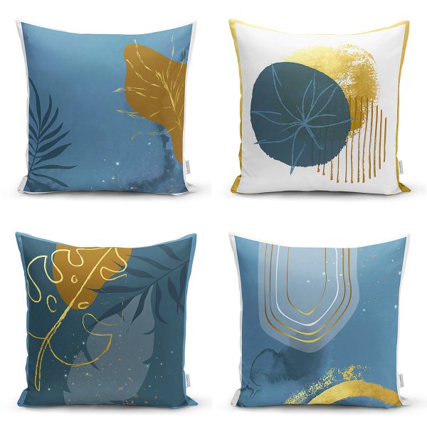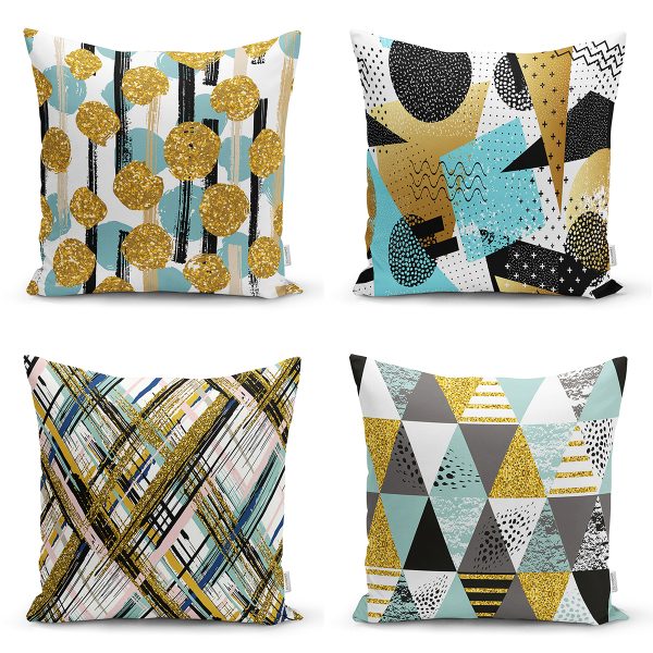 4’lü Renkli Zemin Üzerinde Gold Detaylı Mermer Desenli Modern Yastık Kırlent Kılıf Seti
