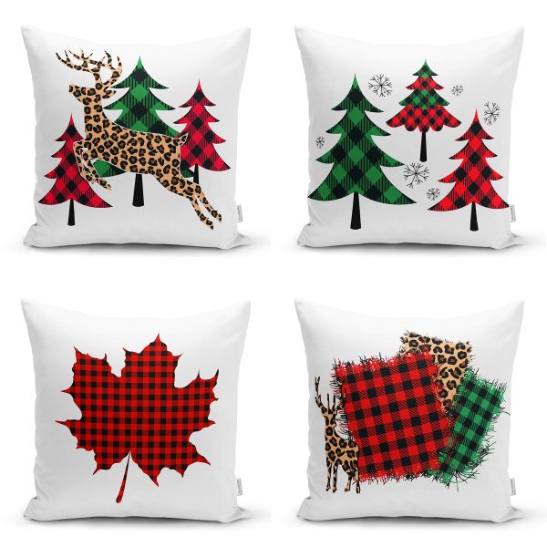 4’lü Ekose Modelli Çam Ağacı Yılbaşı Kombin Modern Yastık Kırlent Kılıfı