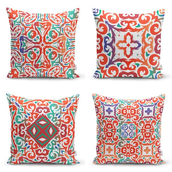 4’lü Beyaz Zemin Üzerinde Çini Desenli Modern Yastık Kırlent Kılıf Seti