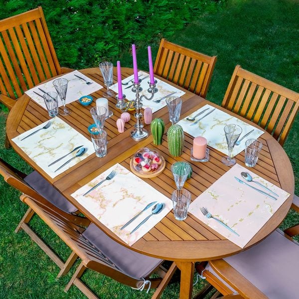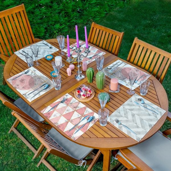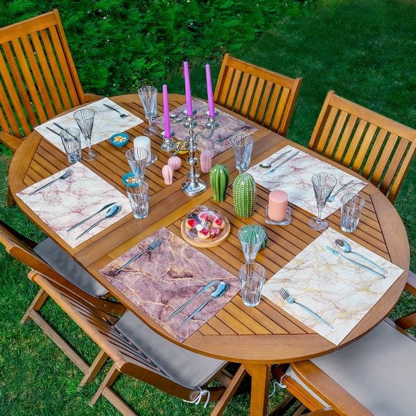 6’lı Pembe Temalı Mermer Zeminli Amerikan Servis Seti