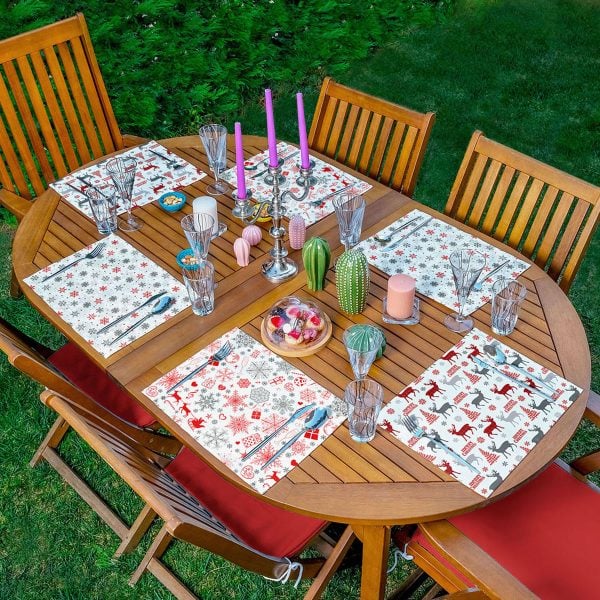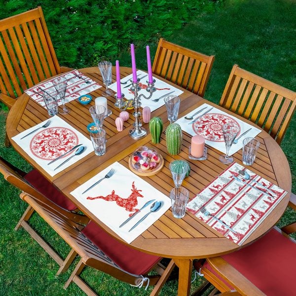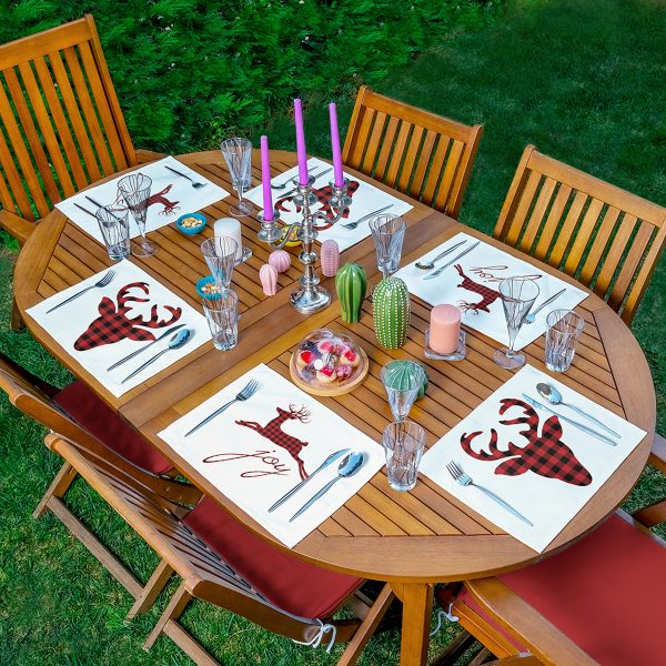 6’lı Ekose Zemin Geyik Tasarımlı Amerikan Servis Seti