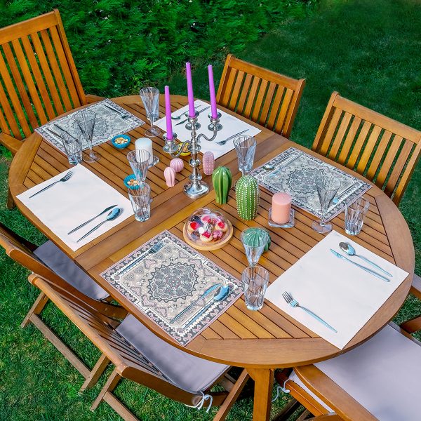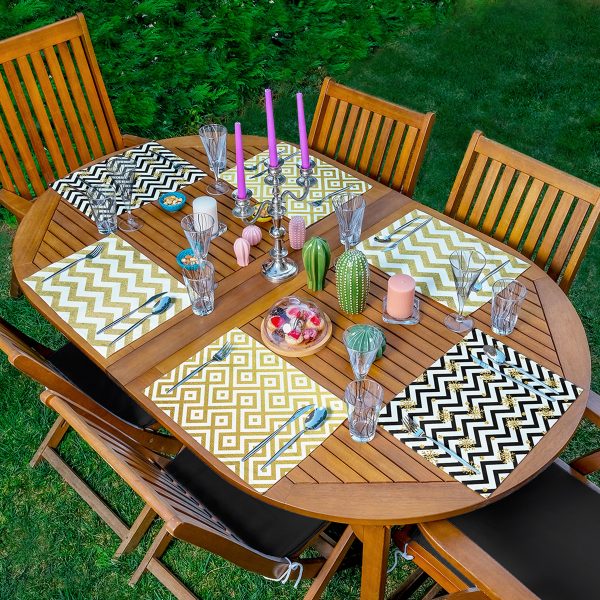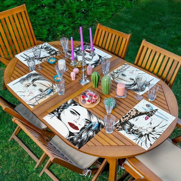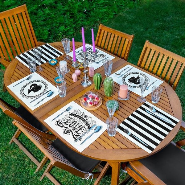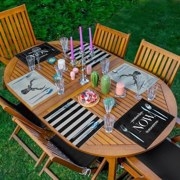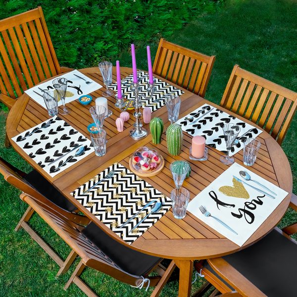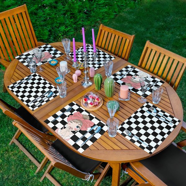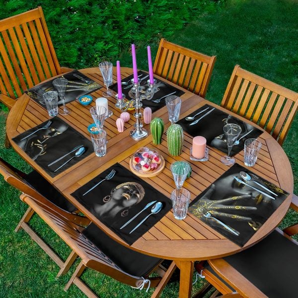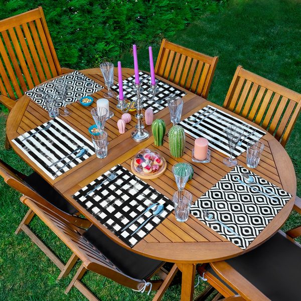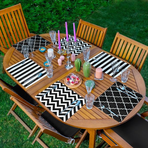 6’lı Siyah Beyaz Özel Tasarım Temalı Amerikan Servis Seti